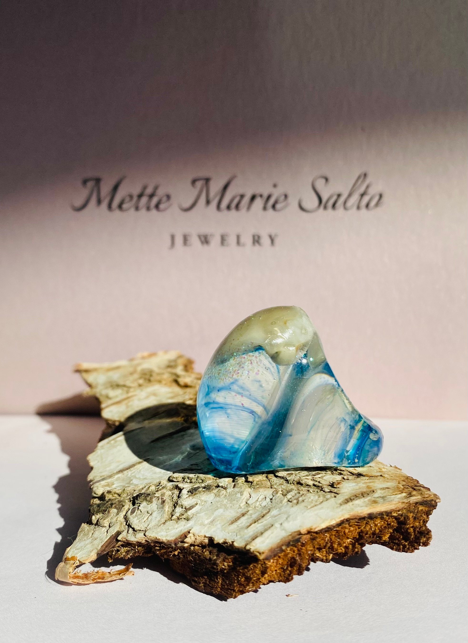 Opbevar helst dit resinsmykke alene og væk fra direkte sollys, da sollys med tiden kan give harpiks et gulligt skær.